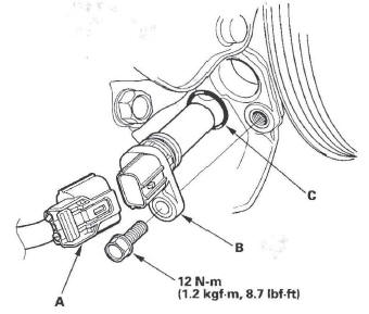 4. Install ECT sensor 2 with a new O-ring (C).