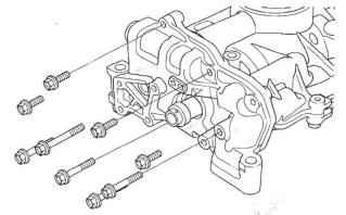 7. Tighten the oil pump mounting bolts.